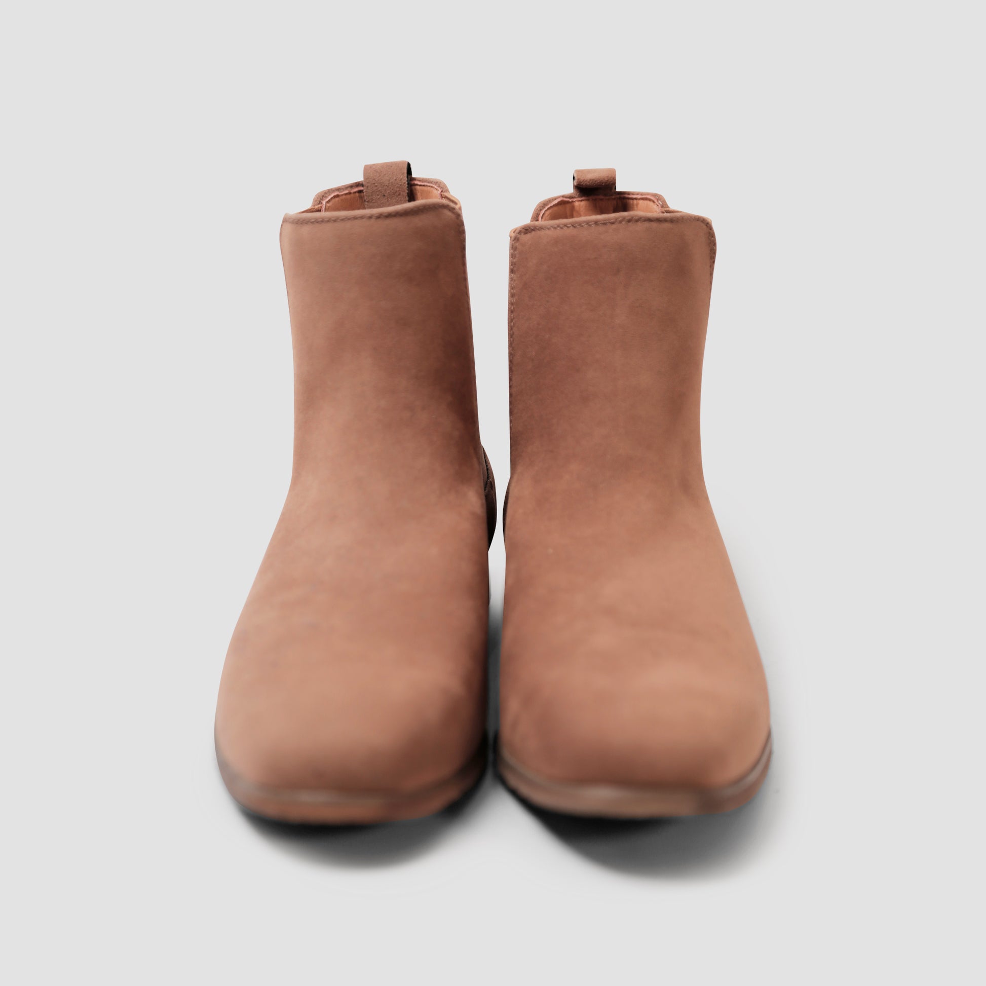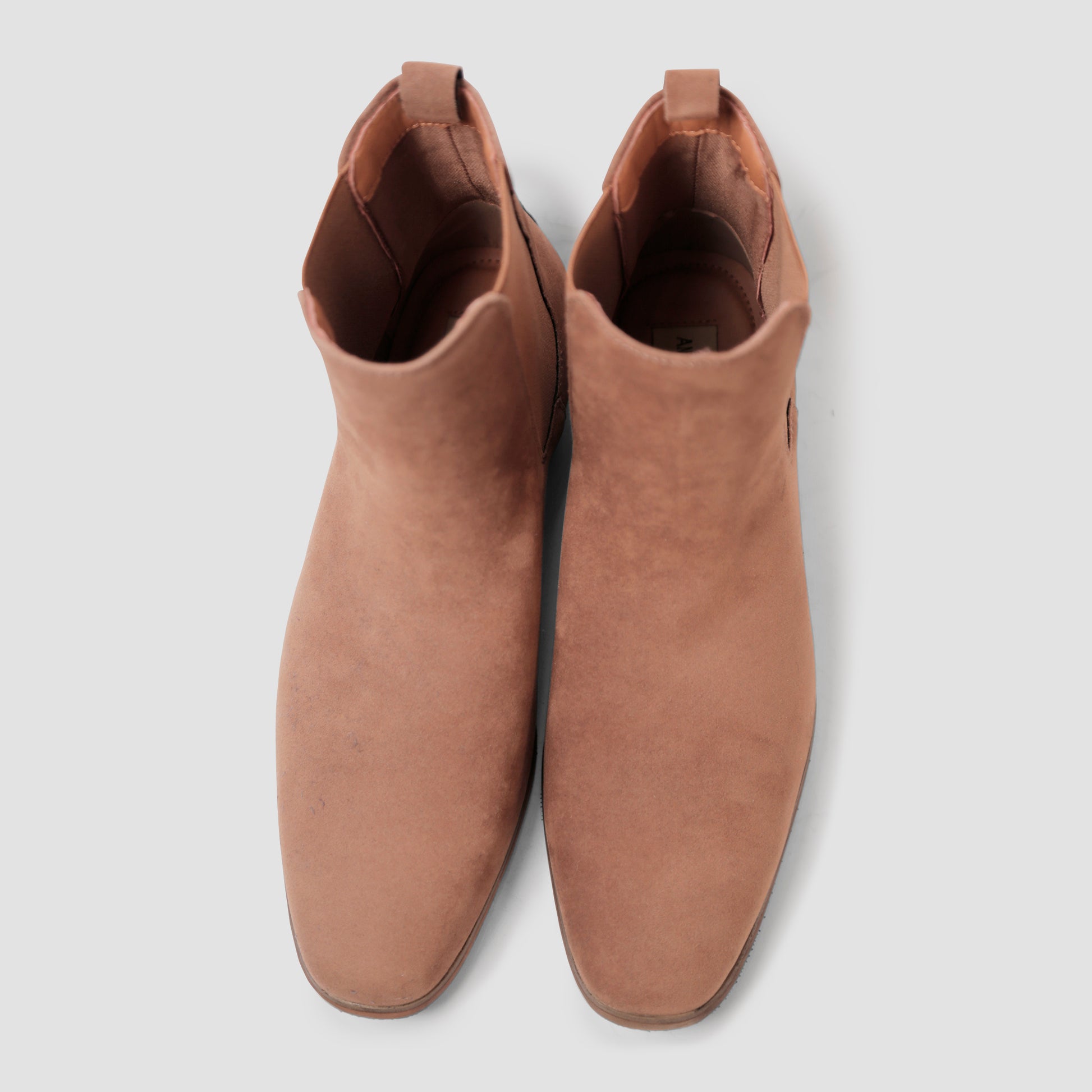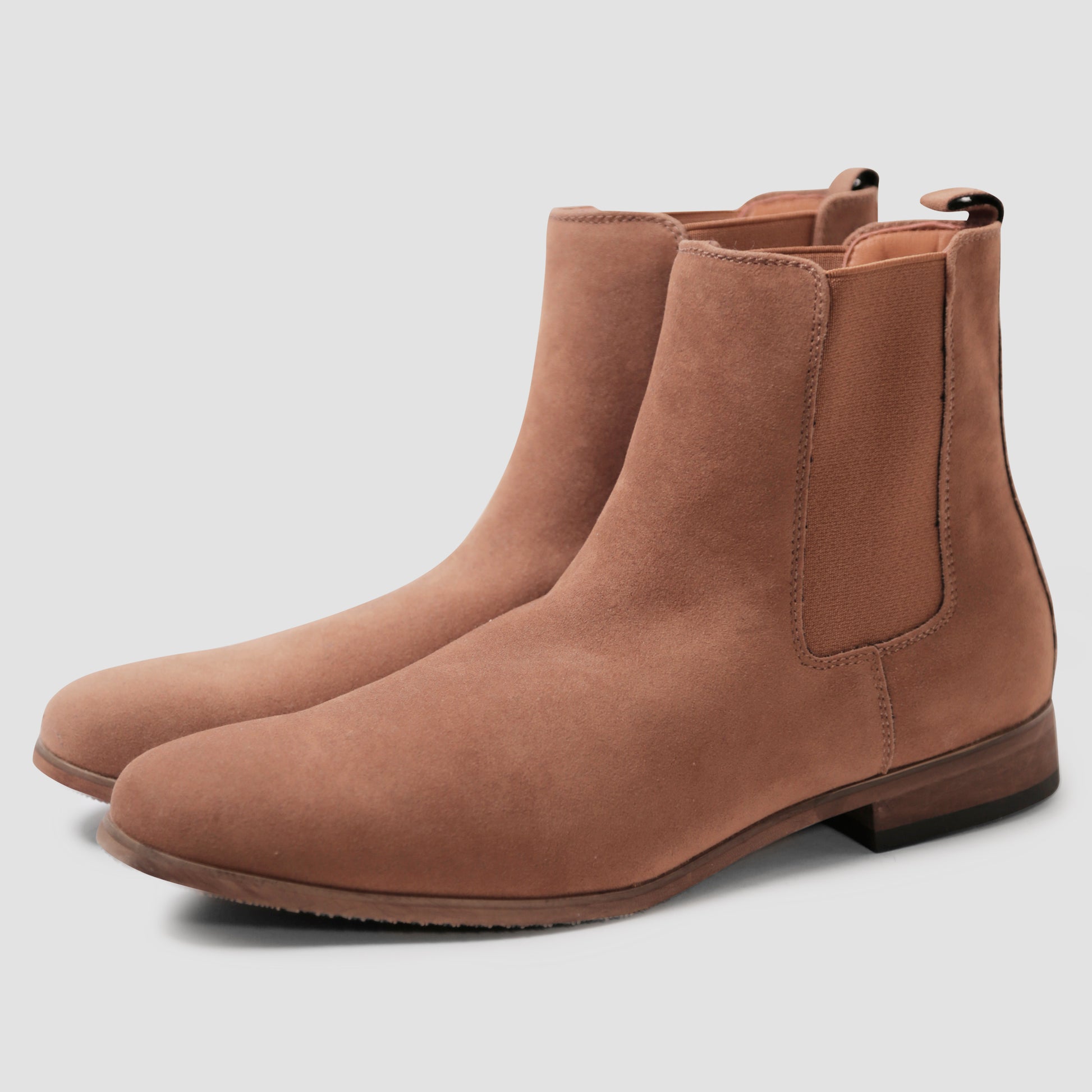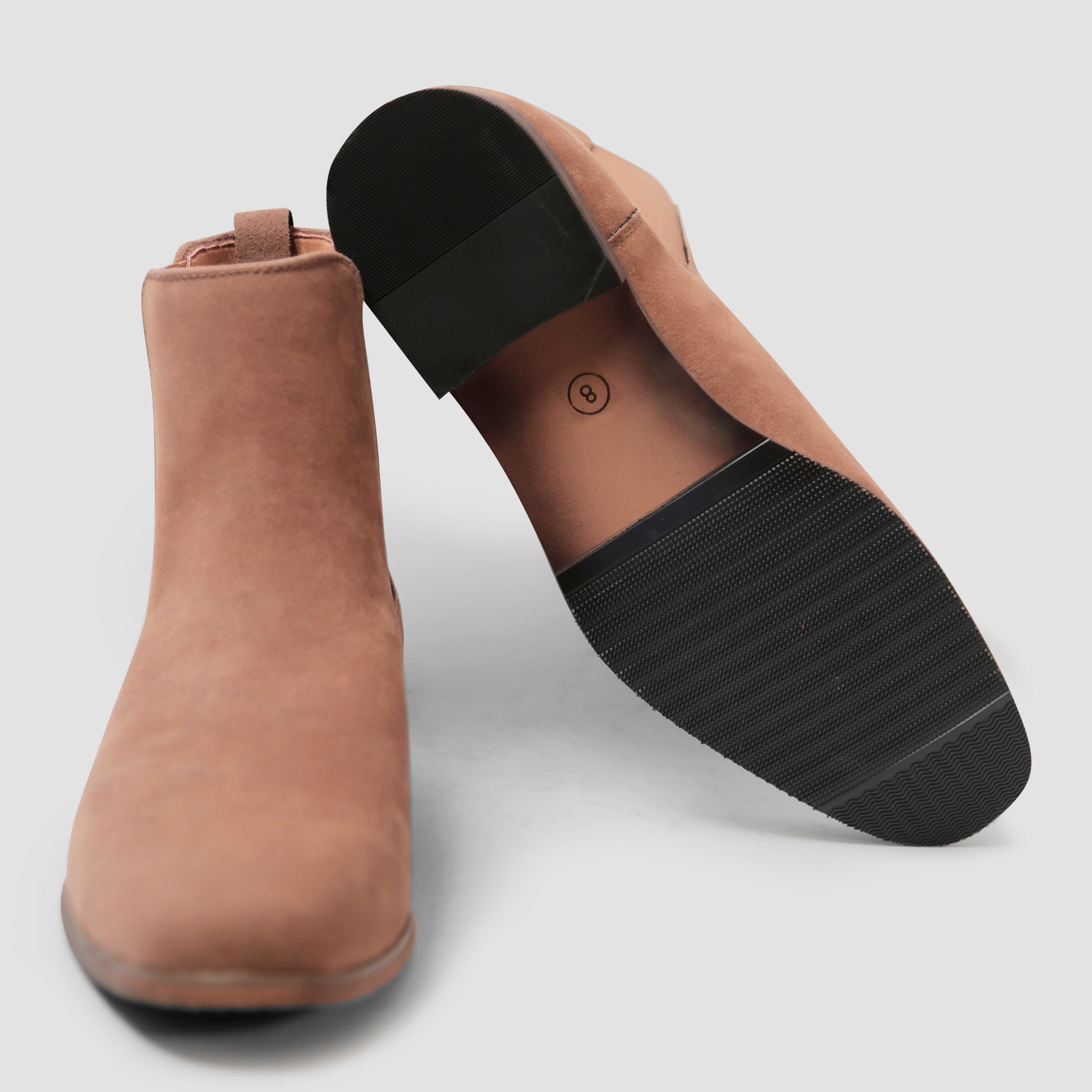 Crafted from premium suede in a soft taupe shade, these boots feature a sleek silhouette with elastic side panels for easy wear.